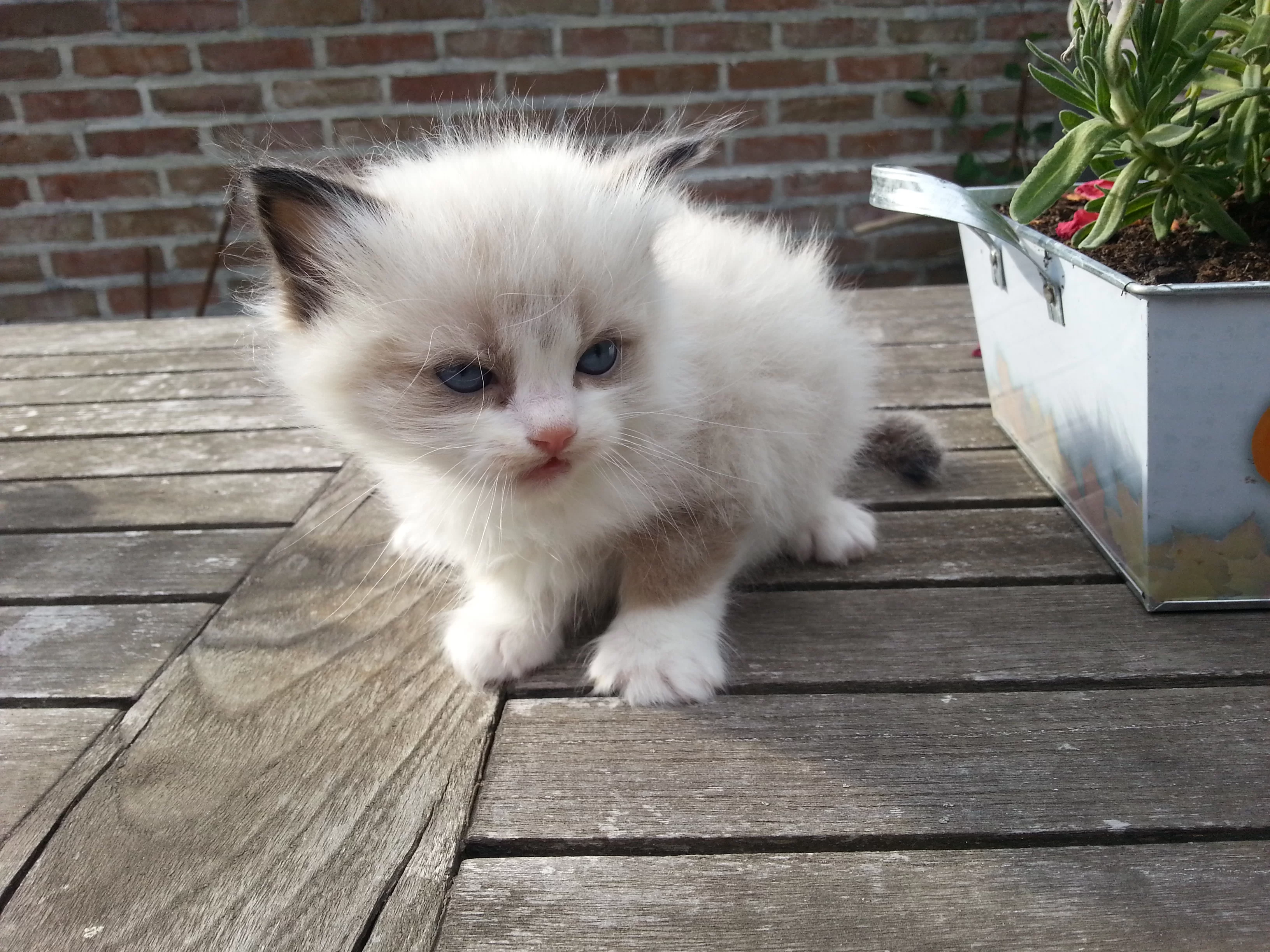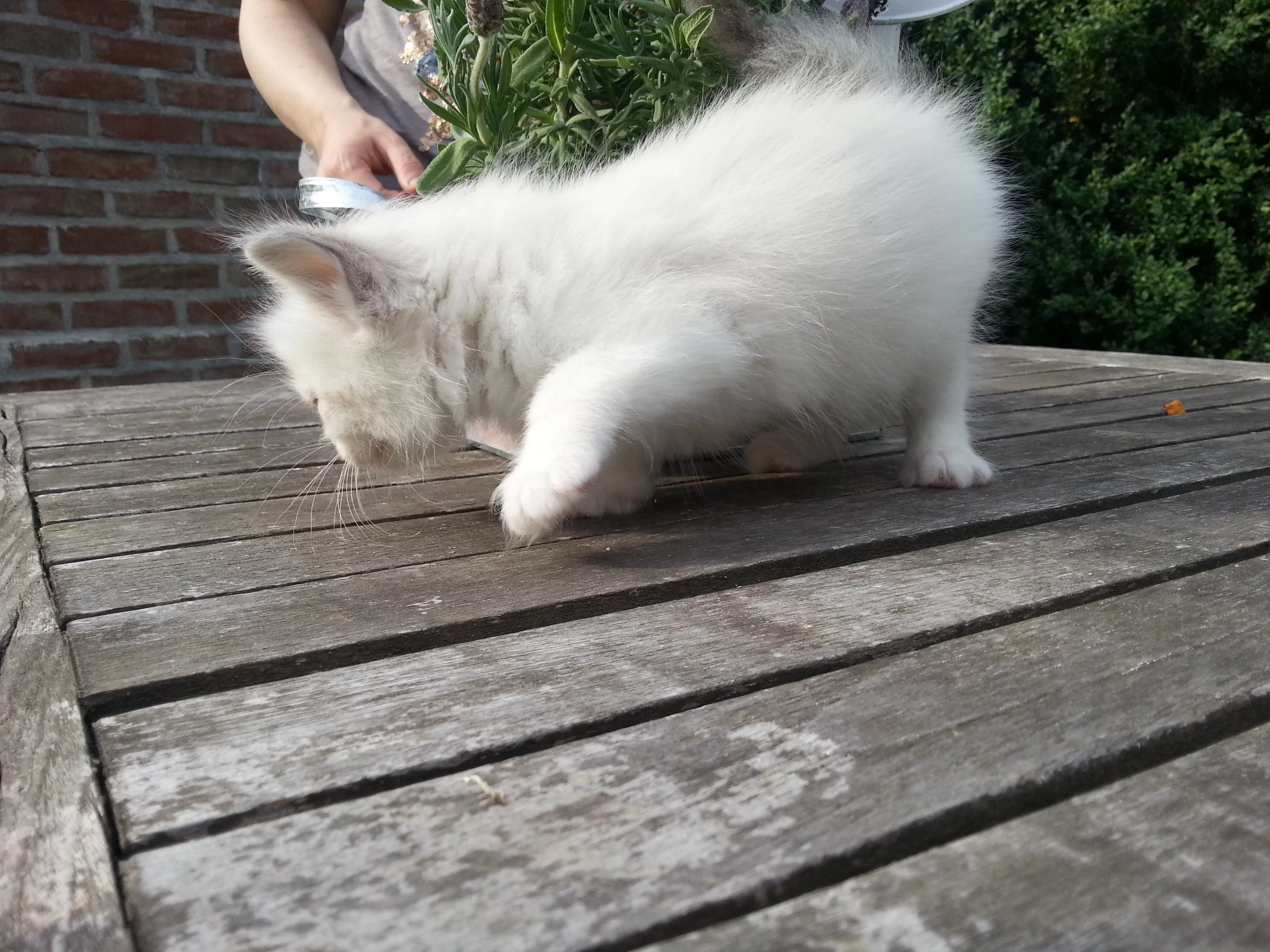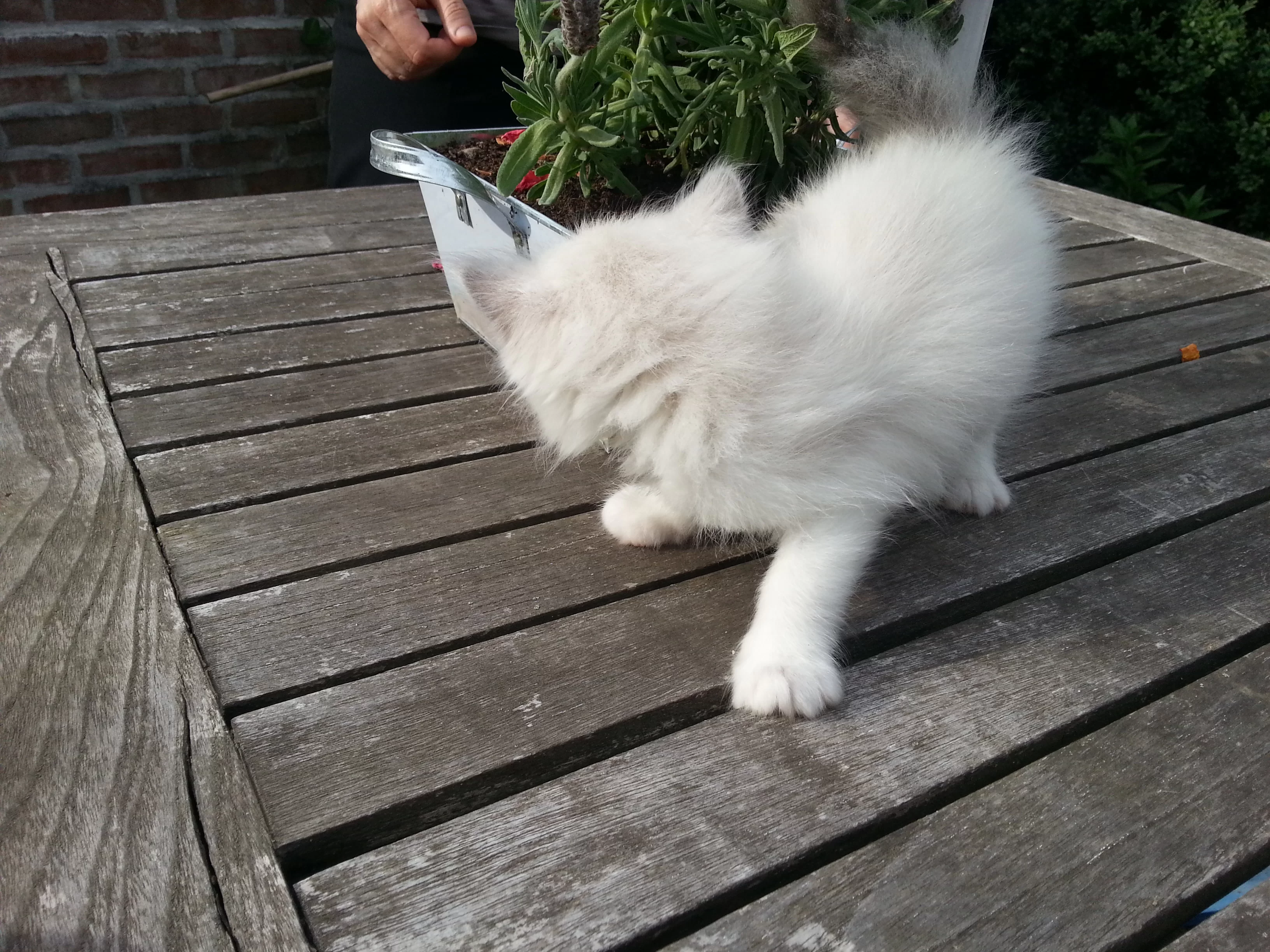 Ze zaten voor te slapen nog in een doos tot 4 dagen geleden. Snoesje was daar niet mee tevreden en ging ze 2 dagen na elkaar uit de doos halen om ze vervolgens op de grond te zetten. We hebben de doos maar weggehaald nu. Het had toch geen zin meer. :)