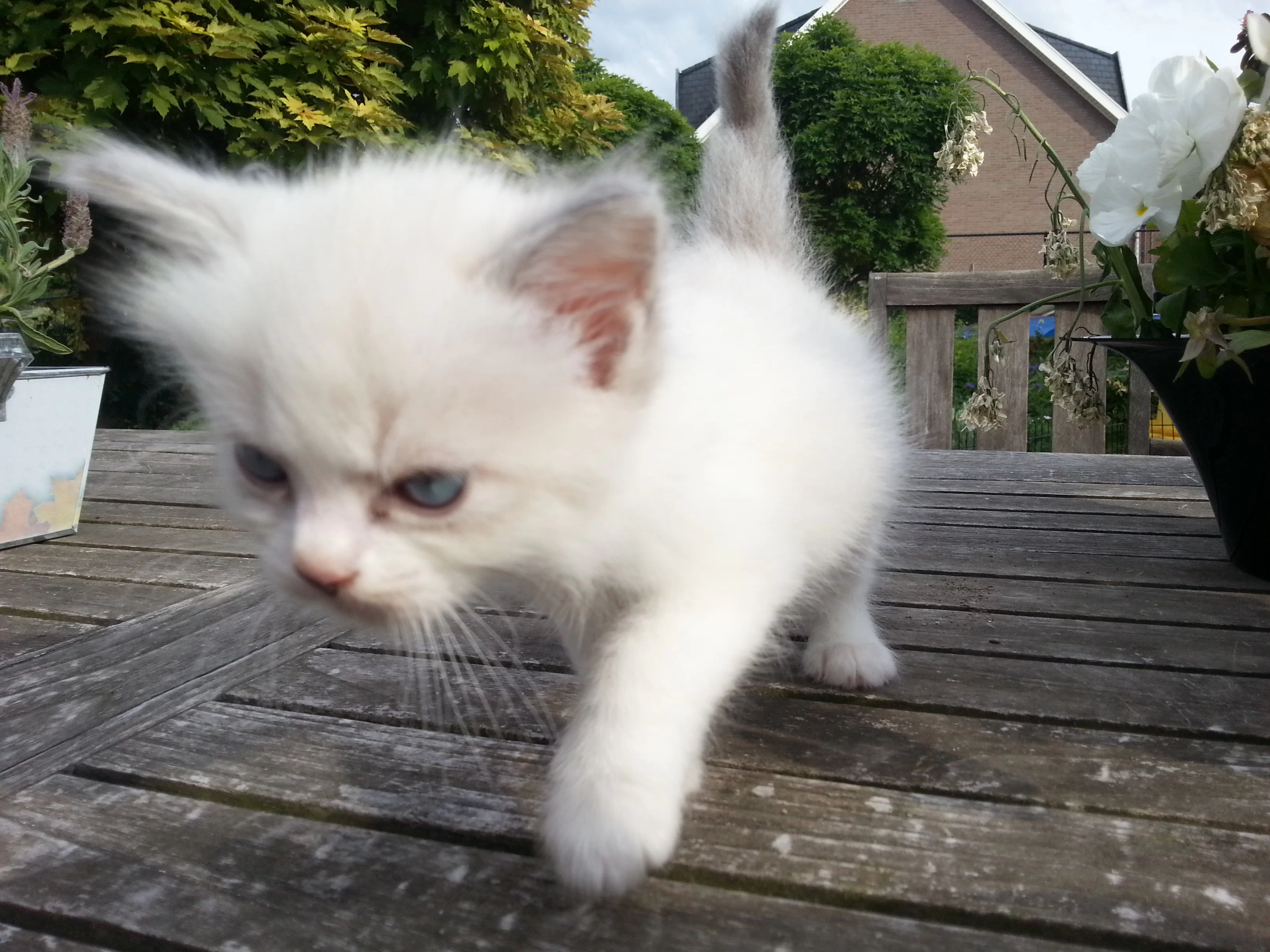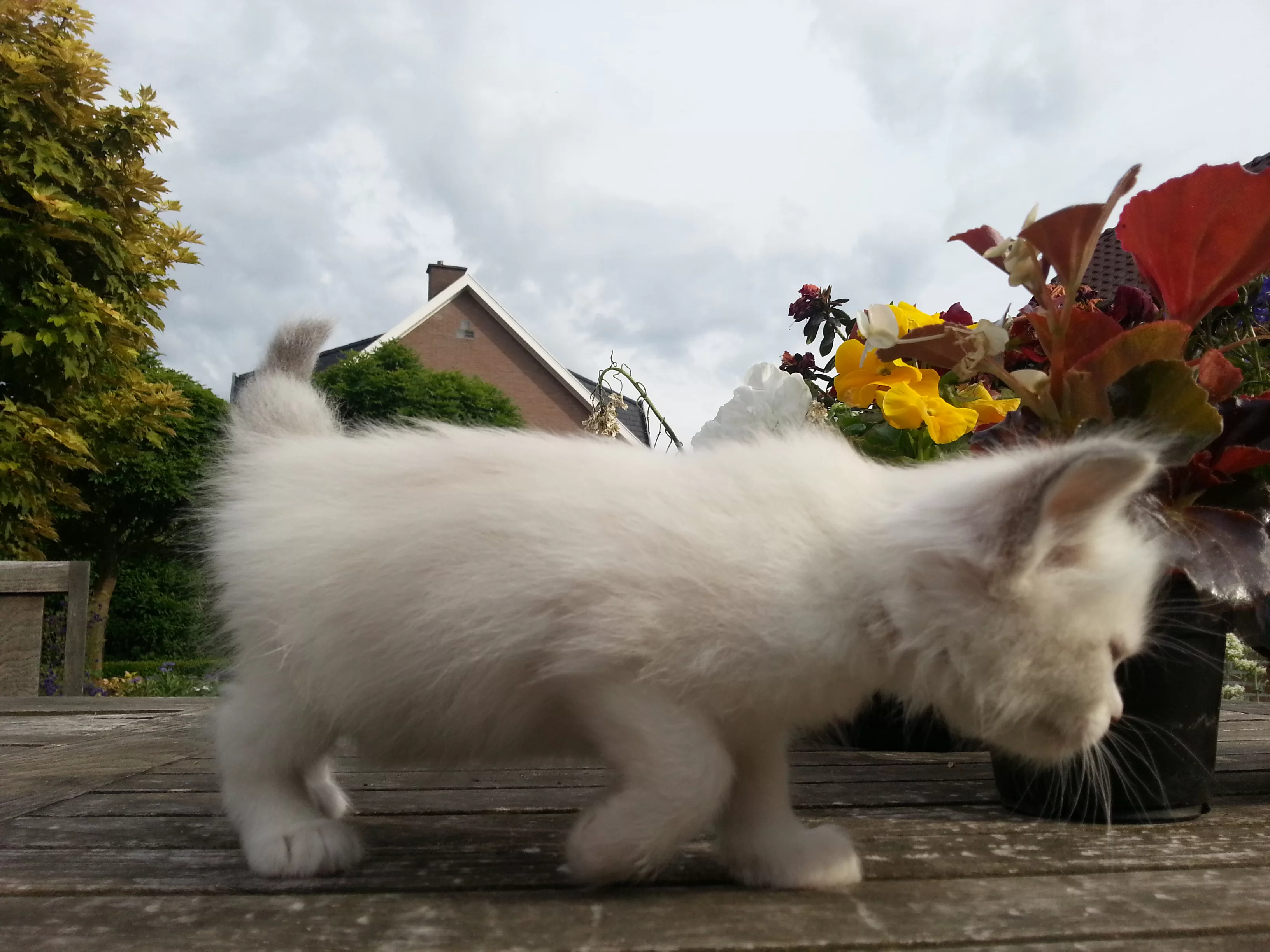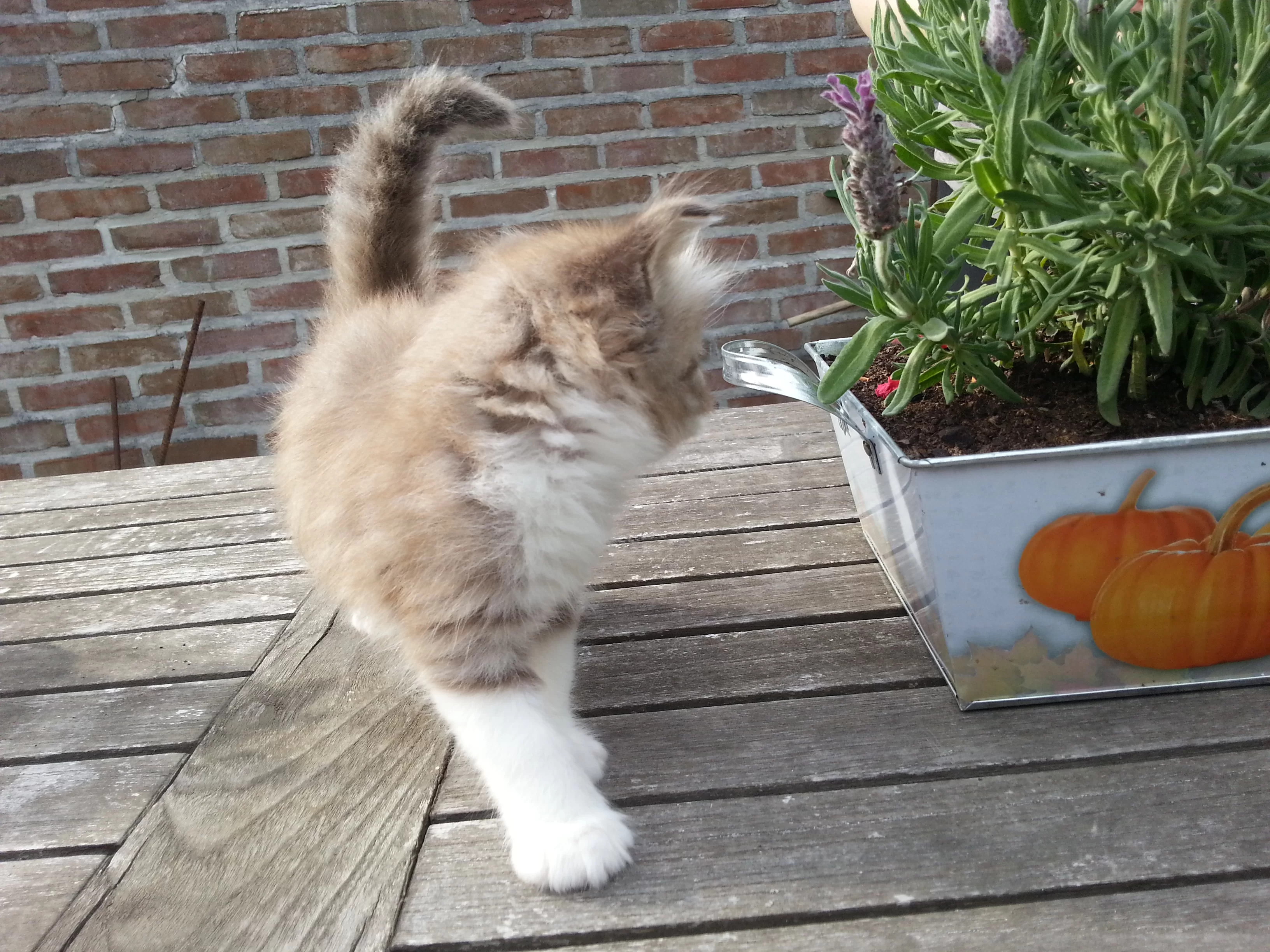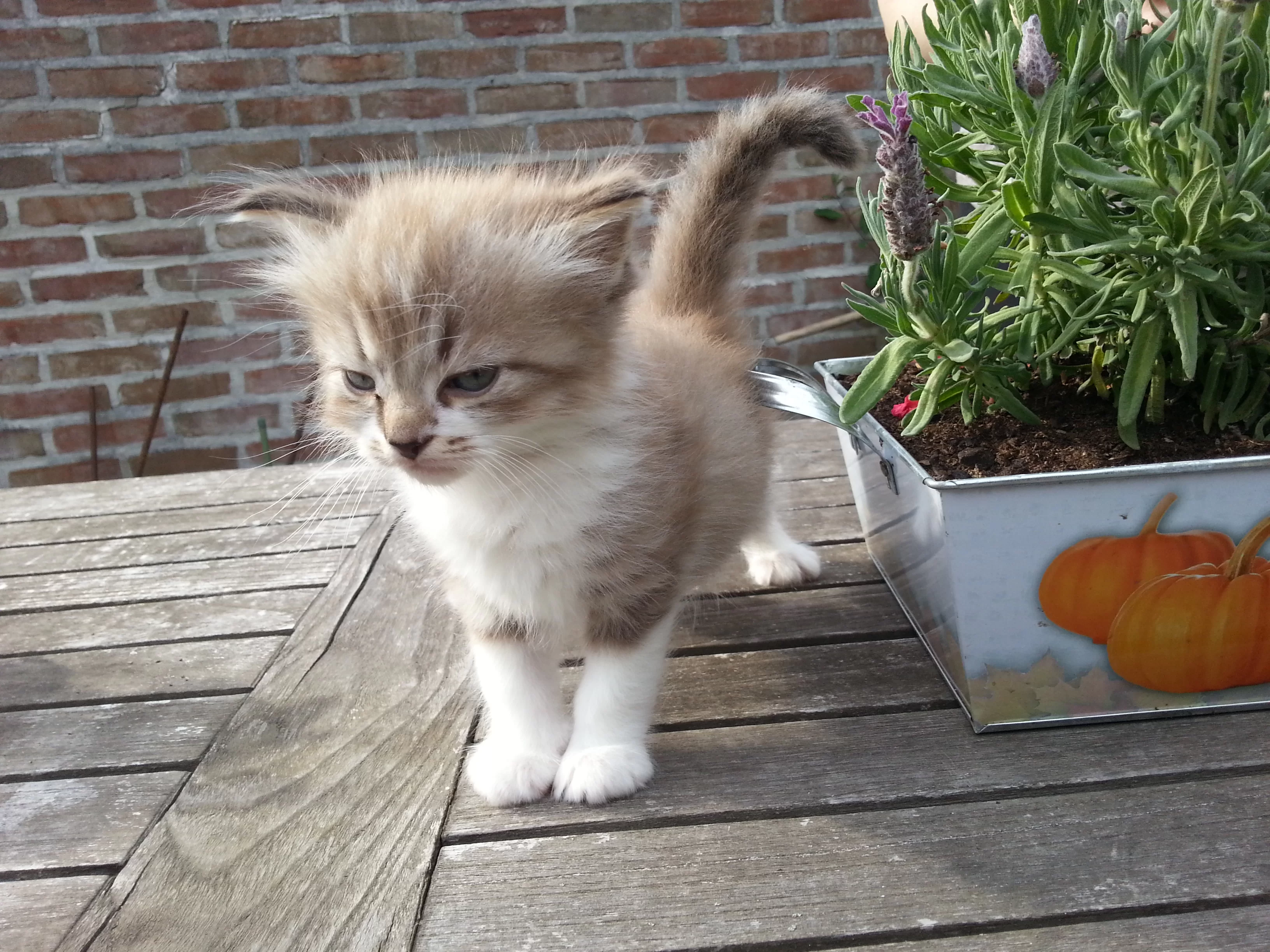 Ze zaten voor te slapen nog in een doos tot 4 dagen geleden. Snoesje was daar niet mee tevreden en ging ze 2 dagen na elkaar uit de doos halen om ze vervolgens op de grond te zetten. We hebben de doos maar weggehaald nu. Het had toch geen zin meer. :)